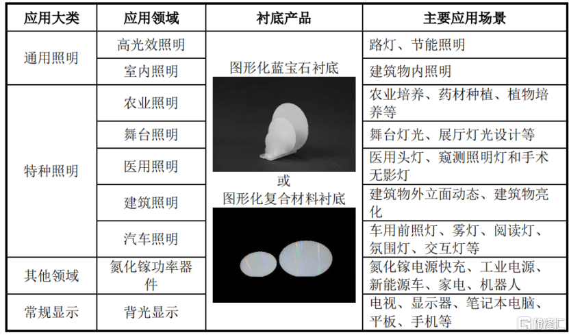 上述产物次要使用于Mini/MicroLED、汽车照明及车载显示、RGB曲显、背鲜明示、照明等范畴,